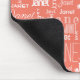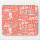 Este mouse pad é laranja e branco com uma nuvem de texto do Word que pode ser personalizada com um nome ou palavra de sua escolha.