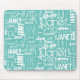 Este mouse pad é verde-menta e branco com uma nuvem de palavras de texto pode ser personalizado com um nome ou palavra de sua escolha.