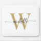 Mousepad personalizado elegante feminino em branco e dourado com monograma minimalista simples inicial do nome assinatura script. Este design simples minimalista de cor lisa apresenta seu primeiro nome em uma linda tipografia de letra manuscrita com floreado (ou caligrafia), monograma inicial em dourado e preto sobre fundo branco. São fáceis de personalizar. Ótimo presente feminino e elegante para aniversário, chá de noiva, dia das mães, aniversário de 16 anos e é para a garota que ama coisas minimalistas e elegantes.