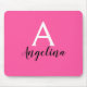 Pasta de mouse rosa-quente com monograma personalizado com escrevendo branco e preto. Este mouse pode ser facilmente personalizado com seu próprio nome personalizado e monograma inicial. Você pode até alterar a cor do texto e o estilo da fonte usando a opção personalizar.