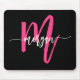 Mousepad Nome do Monograma da Rapariga Preta-Rosa Quente
