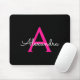 Mousepad Nome do Monograma Girly Black Script Hot-Pink
