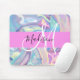 Mousepad Nome do Monograma Iridescente Holográfico Rosa Gir