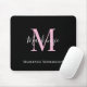 Pad do mouse personalizado de nome do monograma preto-rosa elegante