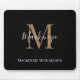 Pad de Mouse Personalizado com Nome de Monograma Dourado Elegante Preto