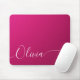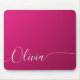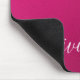 O Pad do Mouse Personalizado de Nome Personalizado de Caligrafia Elegante Branca, com Shimmer Cor-de-Rosa, apresenta um design simples e moderno, com seu nome personalizado em um elegante texto de caligrafia escrita à mão, em tipografia com script de caligrafia em um fundo de verão rosa metálico. Elaborado por ©Evco Studio www.zazzle.com/store/evcostudio
