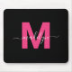 Placa inicial do mouse, preto e rosa, Girly Modern Moderno personalizado. Adicione um toque de encanto feminino e sofisticação ao seu espaço de trabalho com este mouse chic pad. Ele apresenta uma cor-de-rosa-quente magenta, arrojada, centrada em um fundo preto elegante, criando um na moda e design cinza. Perfeito para estudantes, profissionais ou qualquer pessoa que ame acessórios personalizados, este mouse pad faz um presente pensativo para amigos, mães, irmãs de irmandade, ou qualquer pessoa especial. Ideal para feriados, aniversários, ou qualquer ocasião, combina a praticidade com um talento divertido e polido para elevar sua essência de espaço de trabalho do dia a dia.
