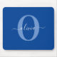 Mousepad Nome do Script Monograma Personalizado Branco Azul