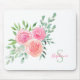 Este mouse monograma apresenta flores de aquarela e folhagem em tons de rosa, coral e verde. Adicione seu nome e inicial para tornar este mouse pad exclusivo. Original Watercolor © Michele Davies.