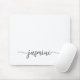 Mousepad personalizado com monograma de nome em script minimalista preto e branco. Este design apresenta seu primeiro nome em uma linda tipografia de letra manuscrita com cauda swash em preto sobre fundo branco. São fáceis de personalizar. Ótimo presente feminino e elegante para aniversário, chá de noiva, dia das mães, aniversário de 16 anos e É para a garota que ama coisas minimalistas e elegantes únicas.