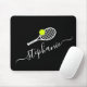 O Mousepad personalizado com uma elegante raquete de tênis e um monograma de bola contém um nome de fonte de script elegante e um logotipo de tênis simples que você pode personalizar para um treinador ou jogador de tênis na sua equipe.