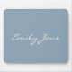 Este mouse pad personalizado apresenta seu nome em lindas letras escritas à mão em um fundo azul empoeirado na moda. ideia de presente de excelente.