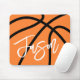 Mouse pad com basquete em preto e laranja e seu nome em branco. Todas as cores são personalizáveis na ferramenta design.