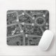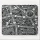 Pasta perfeita do mouse para sua casa ou escritório. Nostalgia da década de 90, tapete nostálgico de tapete de carro estrada de corrida de automóveis cidade negra e branca