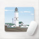 Este desenho apresenta um farol branco, verde e preto sobre o mar. O céu é azul com algumas nuvens. Casas brancas com telhados verdes cercando o farol. Este design pode ser visto em duas mouses pads de estilo diferentes.