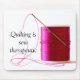Este bocal personalizado celebra a arte de colcha. Ele foi projetado com uma imagem aproximada de uma agulha em um conjunto de linhas brilhantes cor-de-rosa, junto com uma frase engraçada sobre o brincar que diz, "Quilting é sew Therapêutica". O mouse pad tem um apoio não deslizante, e a frente é resistente a poeira e a mancha. Sinta-se à vontade para entrar em contato comigo através do Zazzle se você tiver perguntas sobre este mouse pad ou quiser ajudar a transferir este design para outro item. Estou feliz em ajudar a garantir o ajustado de imagem e texto corretamente.