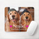 Este mousepad caracteriza uma fotografia de dois cães de sorriso do golden retriever que vestem bonés de beisebol. O texto lê, "sorri! Alguém ama-o!"  Aperfeiçoe para o dia dos namorados!