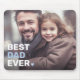 Mouse pad com sua foto personalizada e o texto "Melhor pai de sempre" como uma cobertura azul clara e branca no canto inferior esquerdo.