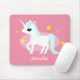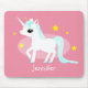 Uma ilustração bonita do vetor de um unicórnio branco simples bonito com uma juba azul e a cauda de dois tons. Cercado por estrelas em um fundo cor-de-rosa. Adicione sua própria nome ou escolha do texto para fazer-lhe verdadeiramente seus próprios!