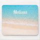 A clean, coastal design featuring vibrant turquoise water meeting soft sand in a smooth, natural shoreline. The balanced composition and deeper blue tones create a clear, readable space for custom names, dates, or meaningful text without distractions.