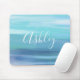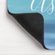 Teclado do rato personalizado moderno. Design com a água-color oceano, tons de azul e nome em caracteres manuscritos em branco. Perfeito como presente.