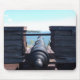 Esta fotografia, tirada sobre um forte ao lado do lago de madeira, leva o olhar do espectador para o cano de um canhão do século 18 e para fora sobre as águas azuis do lago.