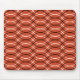 Este mouse pad tem um design Boho de ondas brancas e pretas em um campo de laranja.