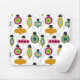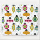 Este mouse pad tem uma design de Natal moderna do século médio de ornamentos com estrelas cinzas afixadas atrás deles.