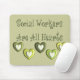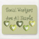 Os presentes do assistente social, "assistentes sociais são todos os corações", t-shirt, canecas, chapéus, sacolas, botões, cartões, aventais, mouspads e etiquetas.