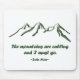 Este mousepad caracteriza montanhas populares projeta, para qualquer um que ama as montanhas! A silhueta da montanha é verde mas parece que as montanhas são neve derrubada. Eu sinto sempre como as montanhas estou chamando-me assim que eu amo as citações famosas de John Muir, que são incluída na parte inferior: "As montanhas estão chamando e eu devo ir.".