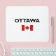 Mostra a bandeira vermelha e branca canadense com folha de mapa e a cidade de "Ottawa" acima da bandeira. Aproveite a capital do país, que significa a capital do Canadá. Design para turistas, visitantes, viajantes, palestrantes, visitantes de teatro, visitantes de museus, Dia do Canadá, residentes de Ottawa, atuários, canadenses, admiradores americanos.