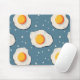 Um padrão de ovos fritos frescos em um fundo azul-céu. Bom dia café da manhã :)