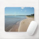Uma extensão pacífica de costa ao longo da Baía de Big Traverse no Lago Superior, onde ondas suaves se encontram com areia macia sob um céu azul brilhante. A praia curva e a água calma capturam a beleza tranquila e aberta da Península Superior de Michigan.
