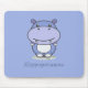 Um hipopótamo bonito em um mouse pad azul com um texto personalizável. Você pode usá-lo em casa, no escritório, ou simplesmente fez um presente para um amigo que ama animais Kawaii! Ele vai adicionar um toque de diversão ao seu desktop!