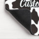 Padrão de fundo de vaca sem costura, preto e branco. Texto personalizado.