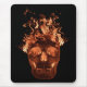 O crânio está engolido em chamas laranja. Excelente de conversa.