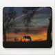 Uma imagem serena e bela de um cavalo, num pôr do sol colorido a sudoeste, com carvalhos e pássaros históricos. Esta imagem foi tirada na Costa Central da Califórnia, San Luis Obispo, área conhecida por ser belas paisagens e campo de cavalos.