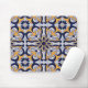 Design de padrão-azulejo português com decoração floral azul, branca e amarela