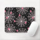 Um mouse pad com um padrão perfeito e fofo com teias brancas e aranhas rosa.