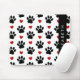 Mousepad Padrão De Patas, Patas Negras, Corações Vermelhos,