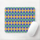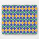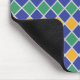 Design geométrica de Ron Trickett em verde, azul e amarelo. Padrão de diamante
