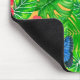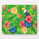 Padrão de aquarela com tucano, borboleta, hibisco e folhas tropicais. Eu pintei elementos para o padrão com aquarelas no papel, e então os digitalizei e fiz o padrão no Illustrator