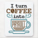 Mousepad Pagroll Clerk I transforma café em folha de pagame
