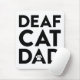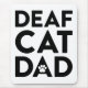 O texto preto "Pai de gato surdo" é empilhado em três linhas de texto em maiúsculas. O "a" em "Pai" tem um dentro de pata branca.