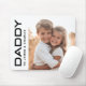 Mouse pad com sua foto personalizada e o texto "Pai" em uma fonte moderna com os nomes das crianças ou outro texto personalizado à direita. Cores pretas e brancas ou personalizadas.