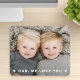 Mousepad com sua foto personalizada e texto em negrito "Pai, nós te amamos" flanqueado por corações como uma camada branca.