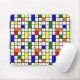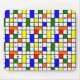 Este mouse pad tem uma design de uma grade moderna do século médio com quadrados e retângulos coloridos. Também tem círculos coloridos colocados nas linhas de grade. Se você gosta do design, mas prefere cores diferentes, me mande mensagem.