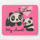 Dois ursos de panda, um pequeno e um adulto, um coração cor-de-rosa, flores cor-de-rosa, e texto que lê o amor de I minha tia em t-shirt do urso de panda, em bolsas, em canecas, em botões, em cartões, e em outros artigos.