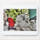 Um par pássaros amigáveis, um papagaio e um cockatoo dizem olá! às pessoas que passam perto nas ruas de Key West, Florida.