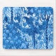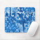 Mouse pad em uma Ilustração baseada no padrão 'Macaw' de Walter Crane para os estúdios William Morris. Uma arara / papagaio selvagem em um cenário exótico da selva - melhorada digitalmente e colorida em azul-indigo e branco